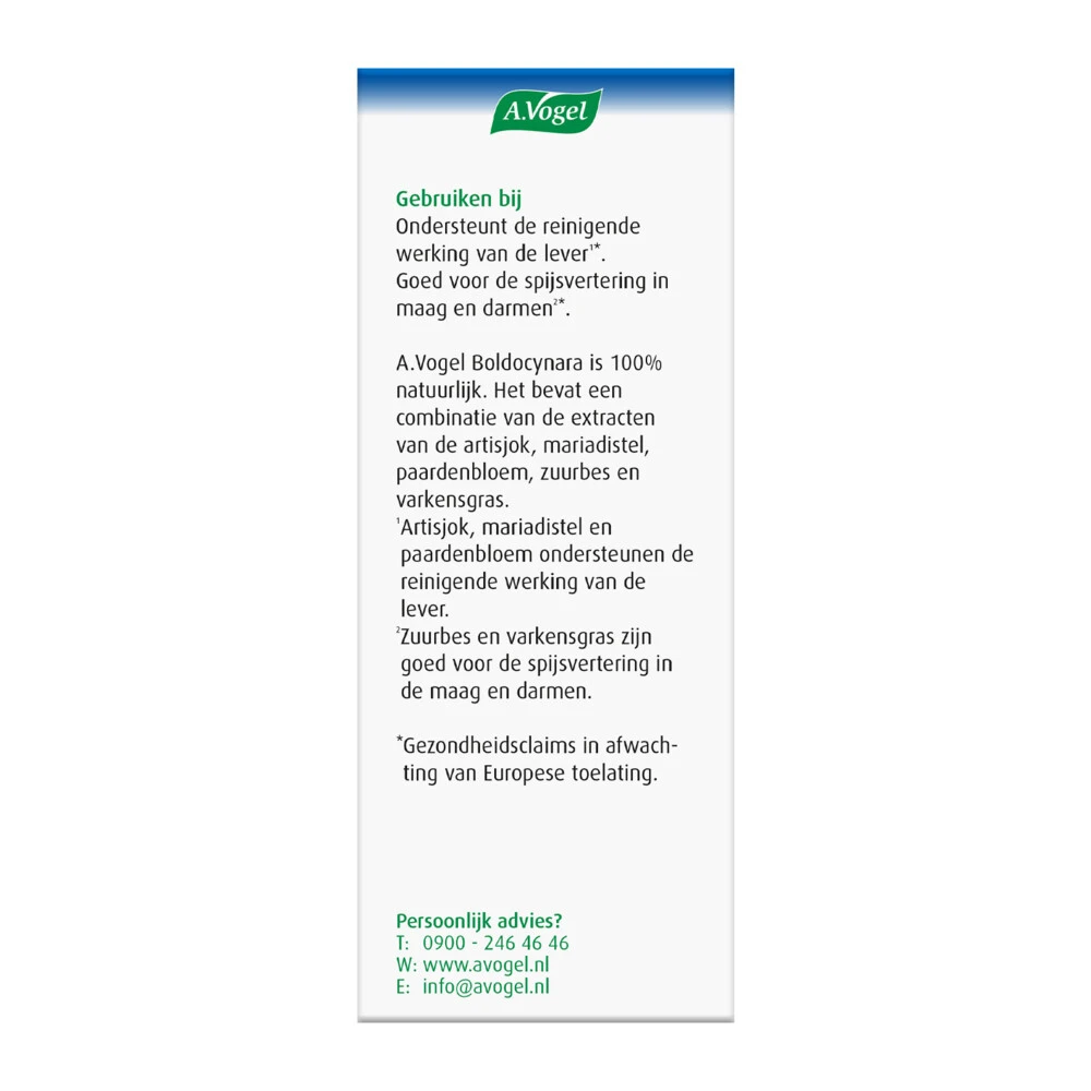 A.Vogel Boldocynara Druppels De Boldocynara Druppels van A.Vogel is een voedingssupplement en kruidenpreparaat dat goed is voor de lever* en de spijsvertering. Boldocynara druppels bevat de extracten van Artisjok, Mariadistel, Paardenbloem, Zuurbes en Varkensgras. Artisjok, Mariadistel en Paardenbloem ondersteunen de reinigende werking van de lever. Tevens ondersteunt Paardenbloem het functioneren van de maag en tenslotte zijn Zuurbes en Varkensgras goed voor de spijsvertering in de maag en