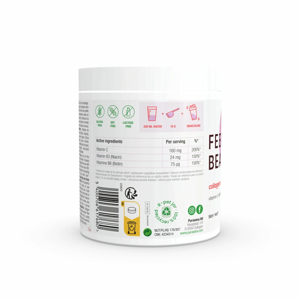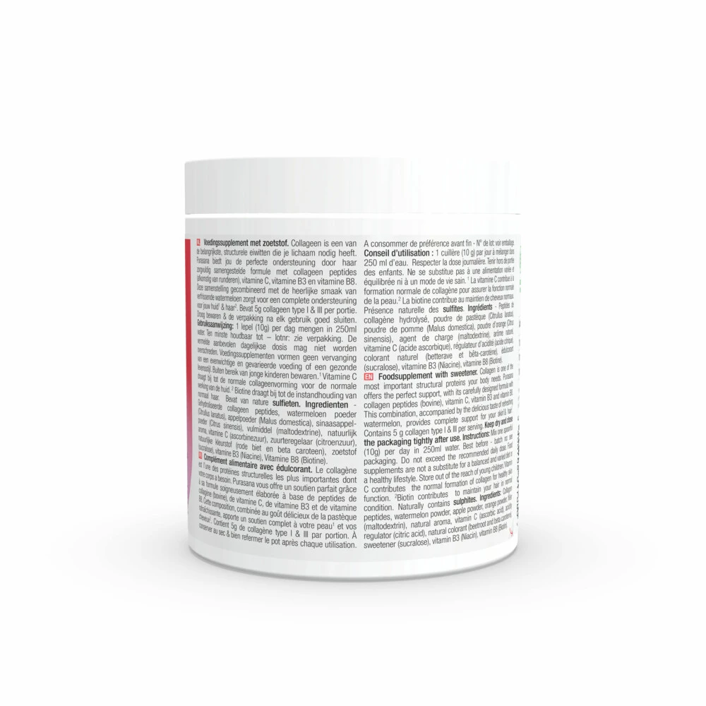 Purasana Collageen Watermeloen Huid, Haar en Nagels Purasana Collageen Watermeloen Huid, Haar en Nagels is een voedingssupplement met zoetstof. Collageen is een van de belangrijkste, structurele eiwitten die je lichaam nodig heeft. Purasana biedt jou de perfecte ondersteuning door haar zorgvuldig samengestelde formule met collageen peptides, vitamine C, vitamine B3 & vitamine B8. Deze samenstelling gecombineerd met de heerlijke smaak van verfrissende watermeloen zorgt voor een complete