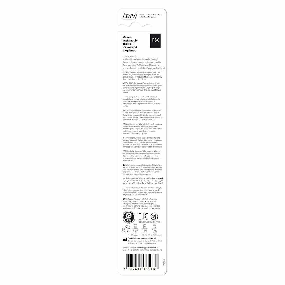 TePe Good TongreinigerTePe GOOD Tongreiniger maakt onderdeel uit van de unieke TePe GOOD lijn die gemaakt is van bio-based plastic en ontworpen om bacteriën op de tong te verwijderen, om de mondgezondheid te verbeteren en een slechte adem te voorkomen. Het ontwerp komt overeen met de natuurlijke vorm van de tong, waardoor de kokhalsreflex wordt verminderd en je daardoor makkelijker achterin de mond komt. De drie iets verhoogde bladen geven een drievoudig effect, wat betekent dat bacteri&eum