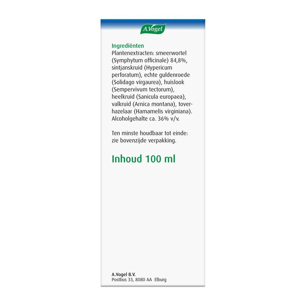 A.Vogel Symphosan Spieren en PezenSymphosan van A.Vogel is voor uitwendig gebruik en verzorgt zwaarbelaste spieren en pezen. De spieren kunnen (zwaar)belast worden door dagelijks werk, sporten of inspanningen die je niet bent geweend om te doen. Naast de verzorging van de spieren heeft Symphosan ook een huidherstellende werking waardoor je Symphosan ook kunt gebruiken bij de verzorging van littekens.De bijzondere eigenschappen van Symphosan op een rij:Ter verzorging van overbelaste pezen en spie