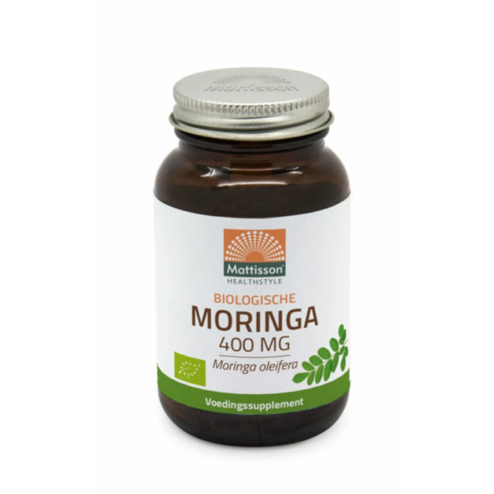 Mattisson Moringa Leaf 400 mgMattisson HealthStyle Biologische Moringa 400mg Capsules is een voedingssupplement op basis van 100% Moringa blad poeder, afkomstig van de Moringa boom. Deze boom wordt ook wel de u0027wonderboomu0027 genoemd. Vooral in de Moringa bladeren bevinden zich waardevolle vitaminen en mineralen.Bevat vitaminen en mineralen100% Moringablad poederBiologisch